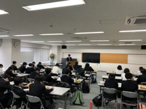 この度、清水南高校中等部の1年生27名をお招きし、キャリア教育の一環として弊社の業務内容や社員の仕事のやりがいについてお話させていただきました。